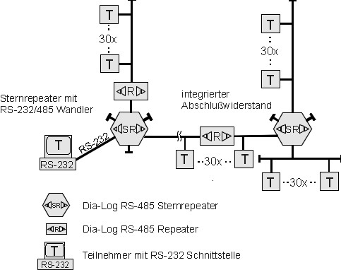 Wirtschaftlichkeit Selbstverständlich können der DIA-LOG Repeater und der DIA-LOG Sternrepeater gleichzeitig in einem Netz eingesetzt werden. Durch die Strukturierungsmöglichkeiten des Netzes und die integrierten Mechanismen zur Störunterdrückung erhöht sich die Wirtschaftlichkeit und Flexibilität des Netzes erheblich. |